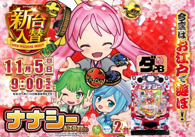 本日11月5日(火) 新台入替予定