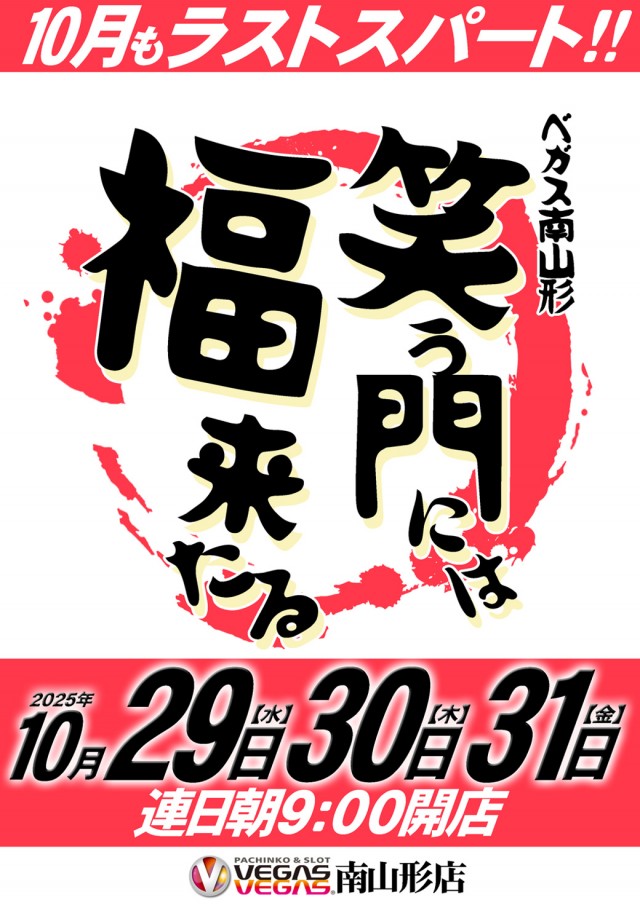 週末もベガスベガス! 山形ベガス朝9時OPEN!