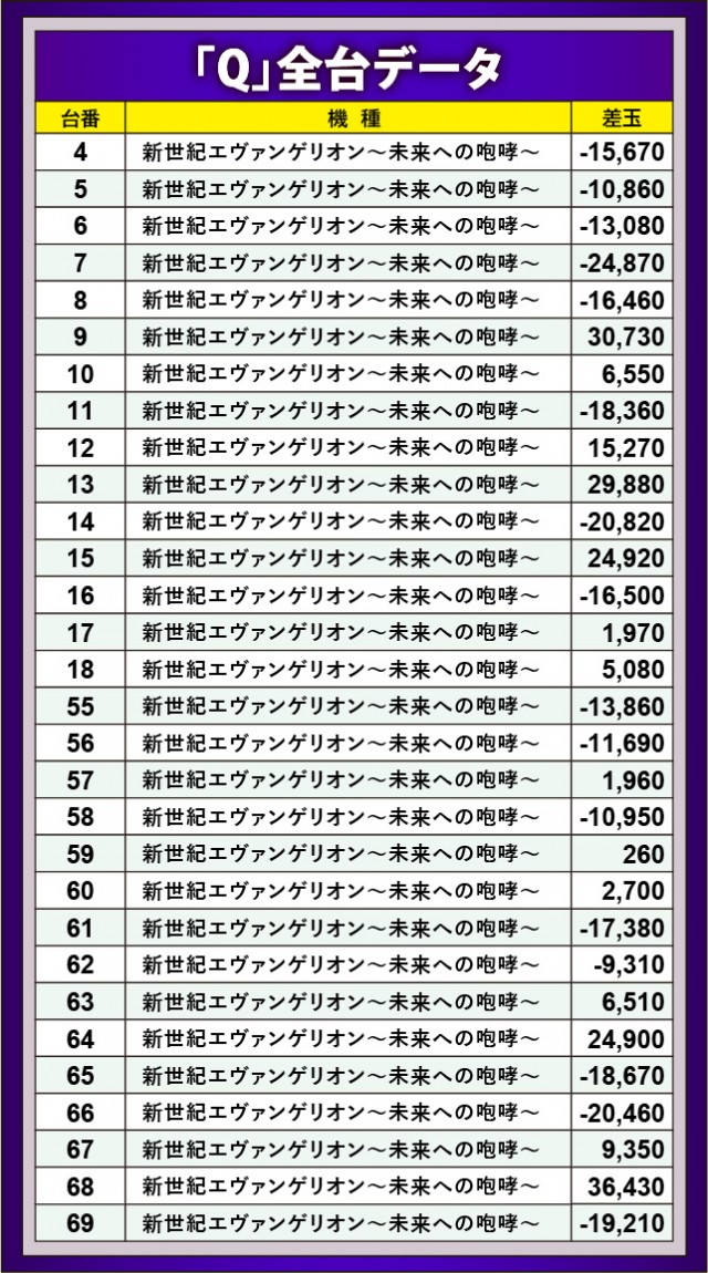 68番台+36,430玉や9番台+30,730玉が発生するなど、『新世紀エヴァンゲリオン〜未来への咆哮〜』の島は各所で凄まじい熱気が放たれていた。他にも2万発OVER台を確認でき、遊技していたファンの満足度は高かったに違いない。