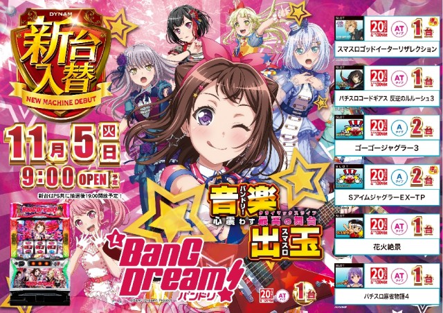 明日11月5日(火) 新台入替予定