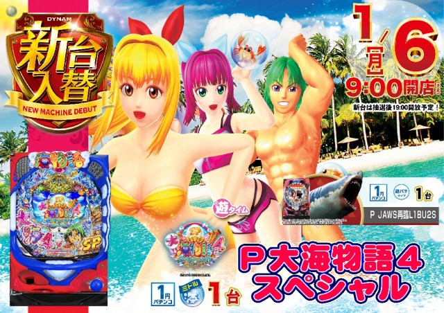明日1月20日(月)新台入替 9時開店予定