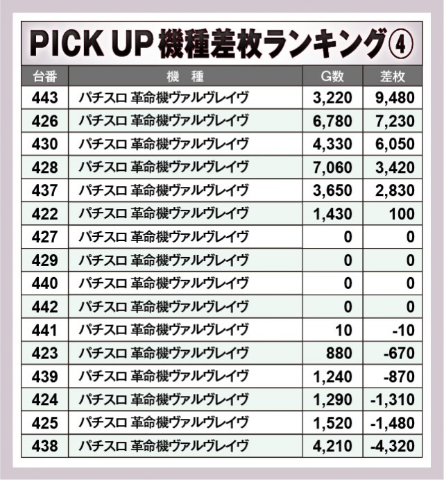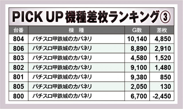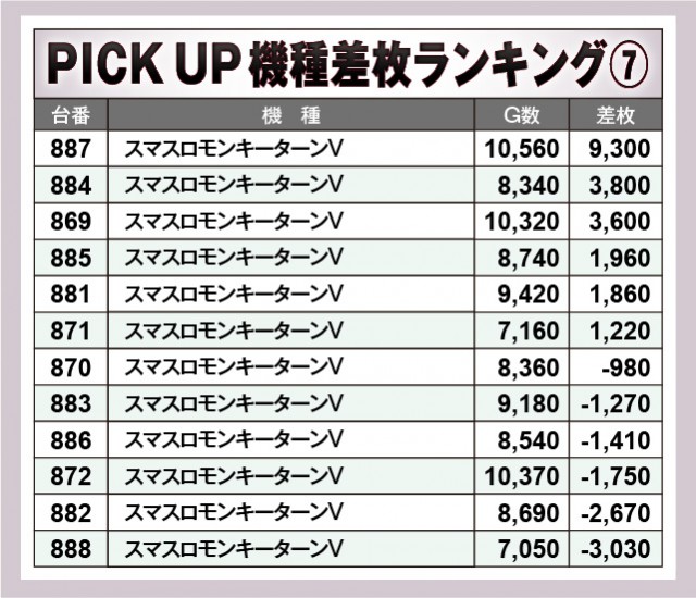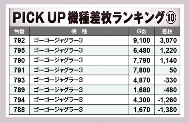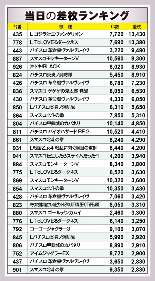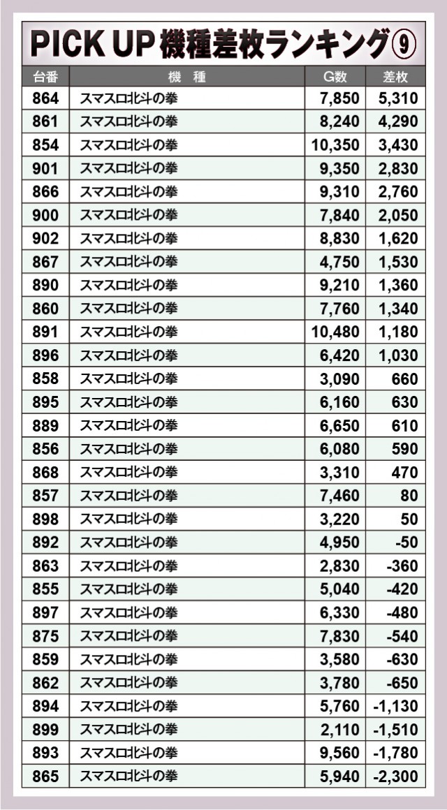 ※差枚数順に掲載しています。