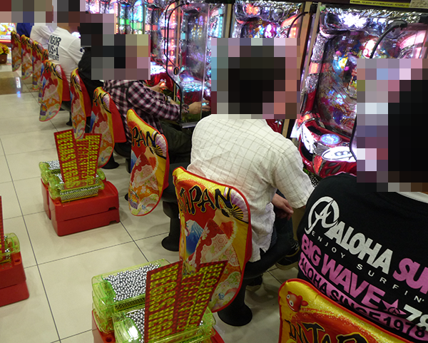 「バジリスク~甲賀忍法帖~絆」や「ミリオンゴッド-神々の凱旋-」も盛況となっており、明るい表情で遊技を続ける姿も多かった。