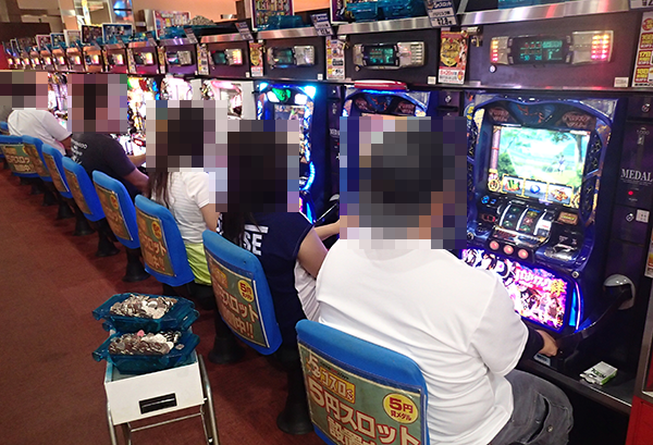 16時を過ぎた頃の20円パチスロをみると、ジャグラーシリーズが人気。うれしそうな表情で遊技をしているプレイヤーも多く、充実した時間を過ごせていることがうかがえた。