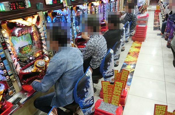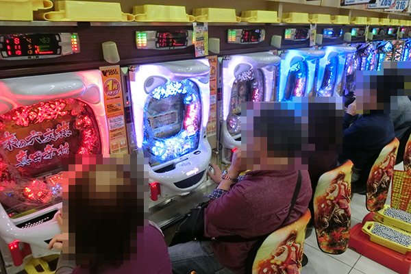 16時頃の4円パチンコの様子をうかがうと、「ぱちんこCR北斗の拳7 転生」が大人気。笑顔で遊技をおこなっているプレイヤーが多く、盛り上がりもひときわ大きかった。