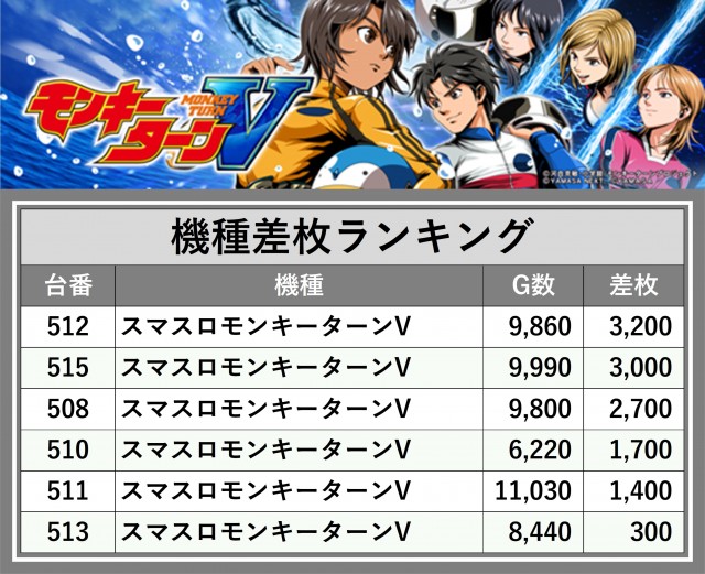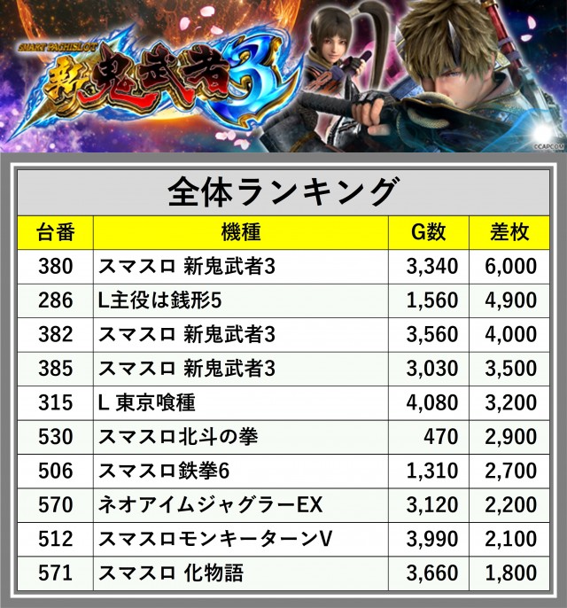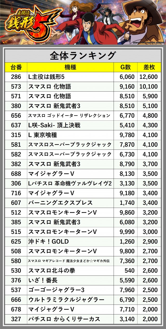 ※差枚数順に掲載しています