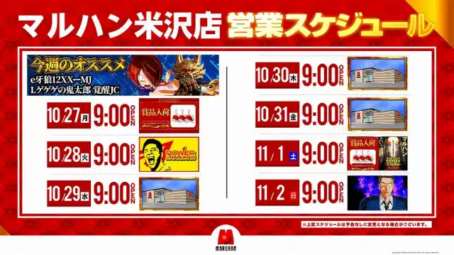 【マルハン米沢店】5月28日(日)粗品配布!!朝9時開店!!