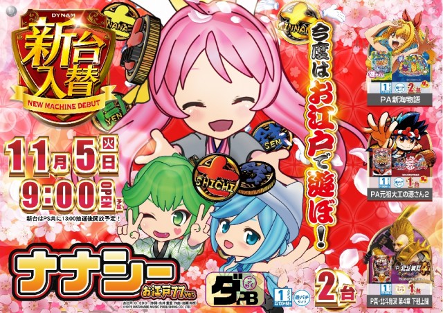 本日11月5日(火) 新台入替予定