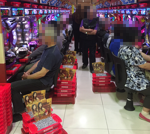 笑顔に次ぐ笑顔。あらゆる場面において、満足度の高さが感じられる写真をおさめた。「マルハン鶴岡店」の一面はパチスロコーナーで決まりだろう。