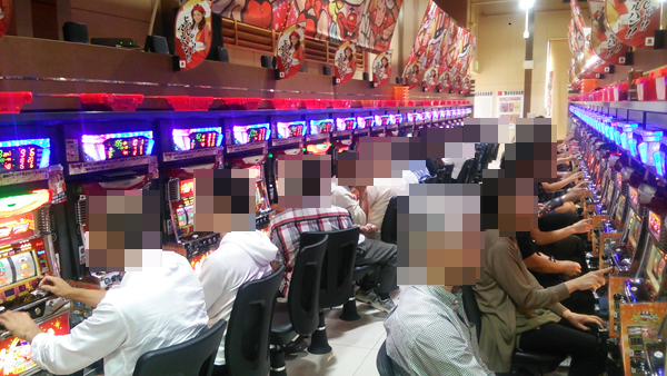 パチンコ・パチスロ共通で、いたるところに笑顔のユーザーを確認。