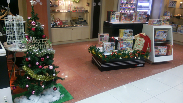 クリスマスにあわせた装飾がつくられ、賞品コーナーがより鮮やかとなっている。
