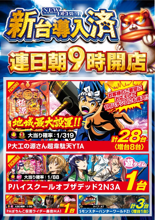 7月5日(月)新台入替(予定)あさ9時オープン!
