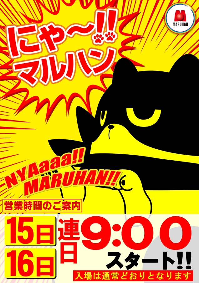 【週末もマルハン】17日・18日連日あさ9時オープン♪