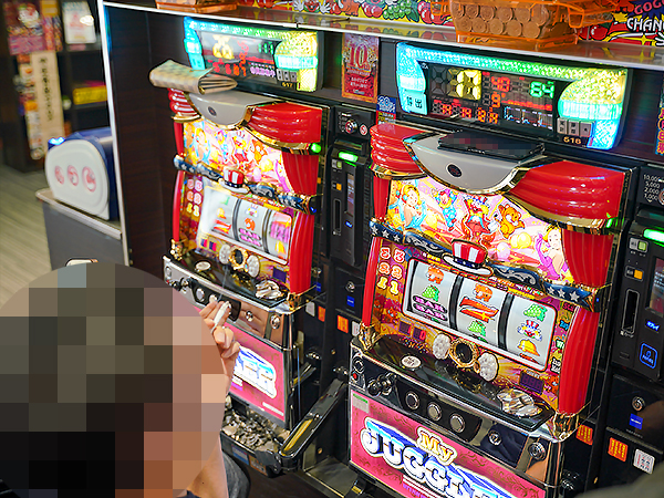 20円パチスロをチェックすると「マイジャグラーⅣ」や「ハッピージャグラーVII」など、ジャグラーシリーズの盛り上がりが大きい。各シマに華やかな光景が広がっていた。