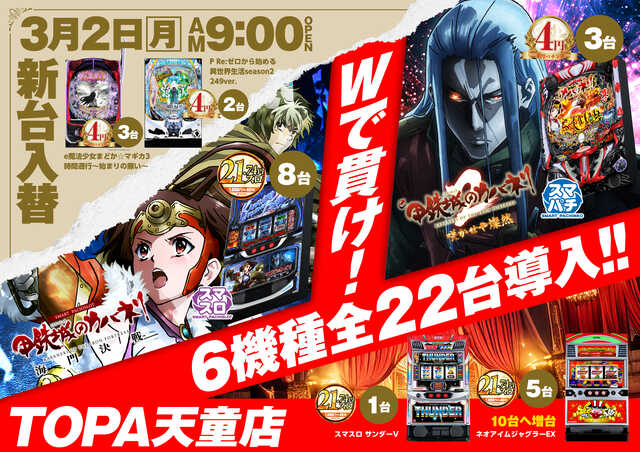 4パチ:208台 0.5パチ:32台 1.124パチ:106台 |