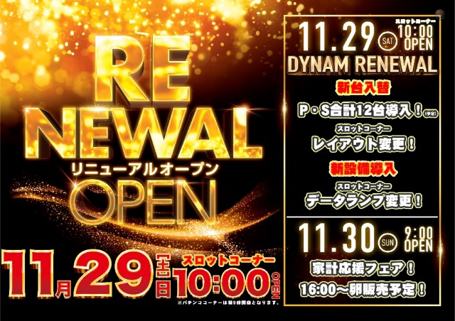 本日11月29日(土)リニューアルオープンS10時開店予定
