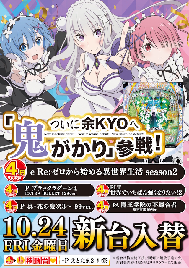 🍂本日新台入替🍂eRE:ゼロなど5機種導入!!