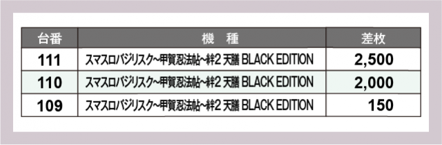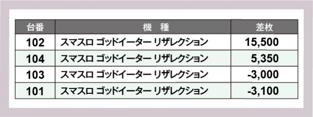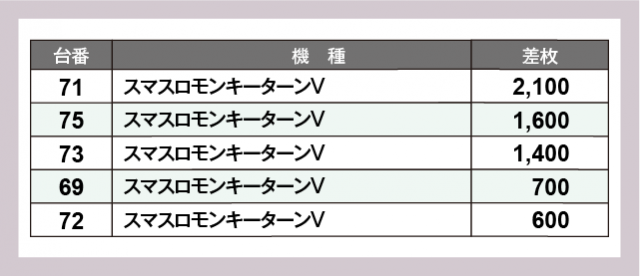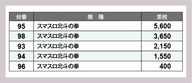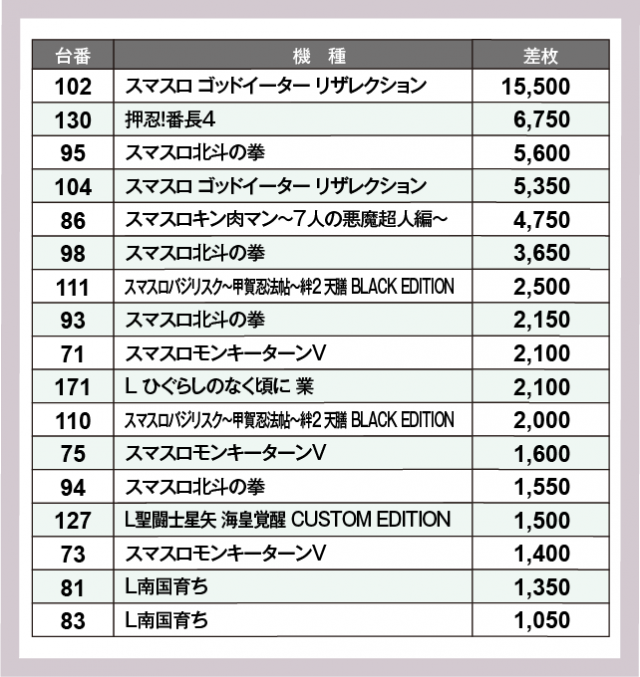 ※差枚数順に掲載しています