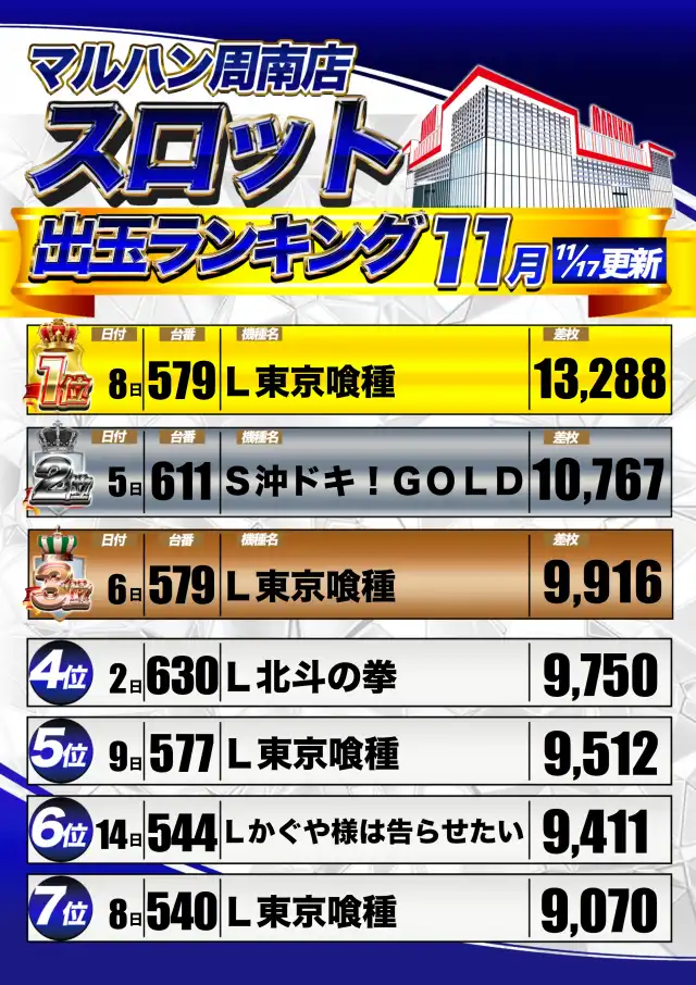 マルハン周南店 山口県周南市にある「マルハン周南店」にて、REAL取材をおこなった。取材日である11月12日の朝の並びには60名前後のプレイヤーを確認。スタッフの元気のよいあいさつに迎えられ、開店時には明るい表情で入店していく姿が目立っていた…