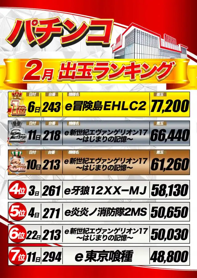 1位 2月7日(土) 2位 3月3日(火) 3位 2月4日(水)