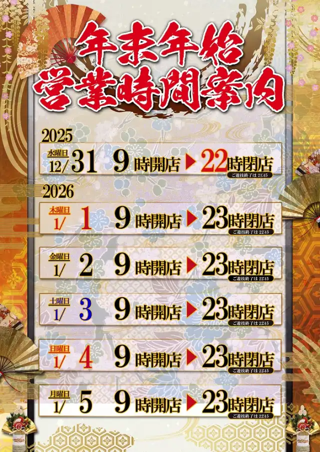 1位 12月27日(土) 2位 12月26日(金) 3位 12月23日(火)