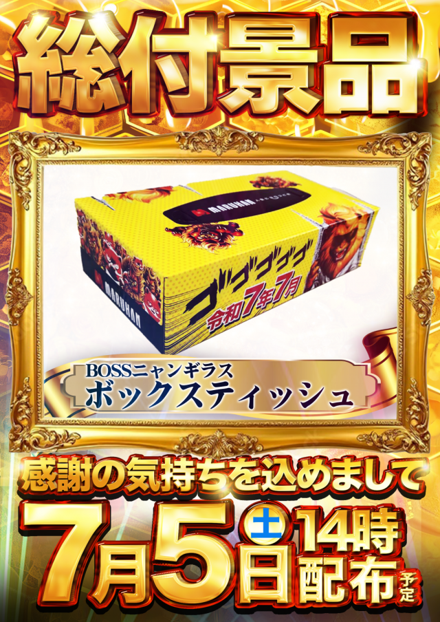 7月5日(土)レッツGOマルハン💡総付景品配布予定!