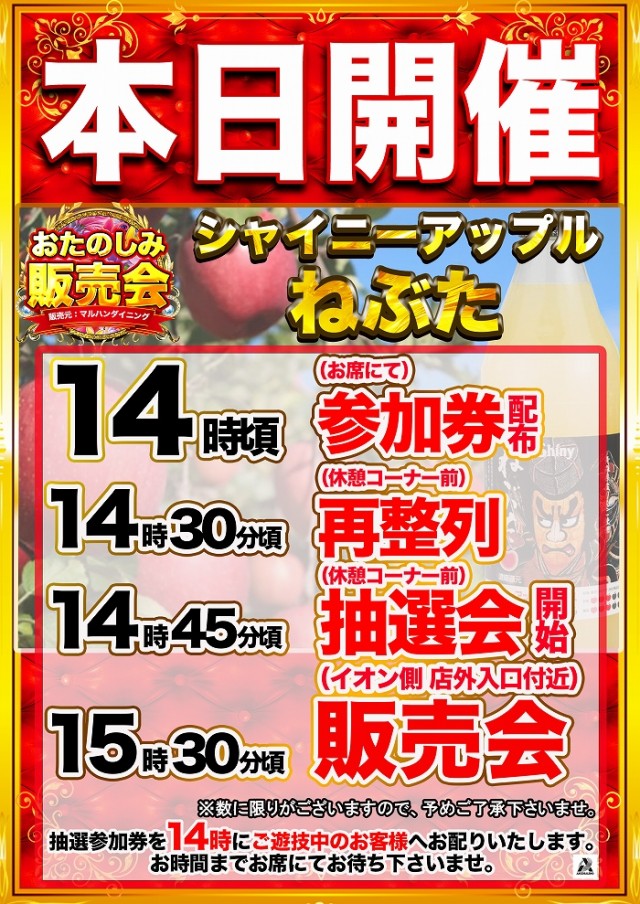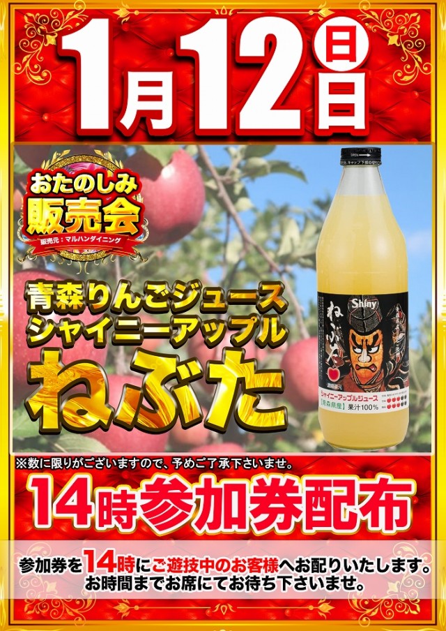 1月12日(日)マルハンダイニング様主催!おたのしみ販売会!