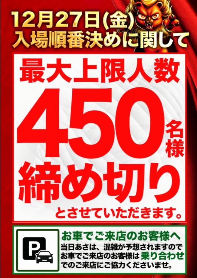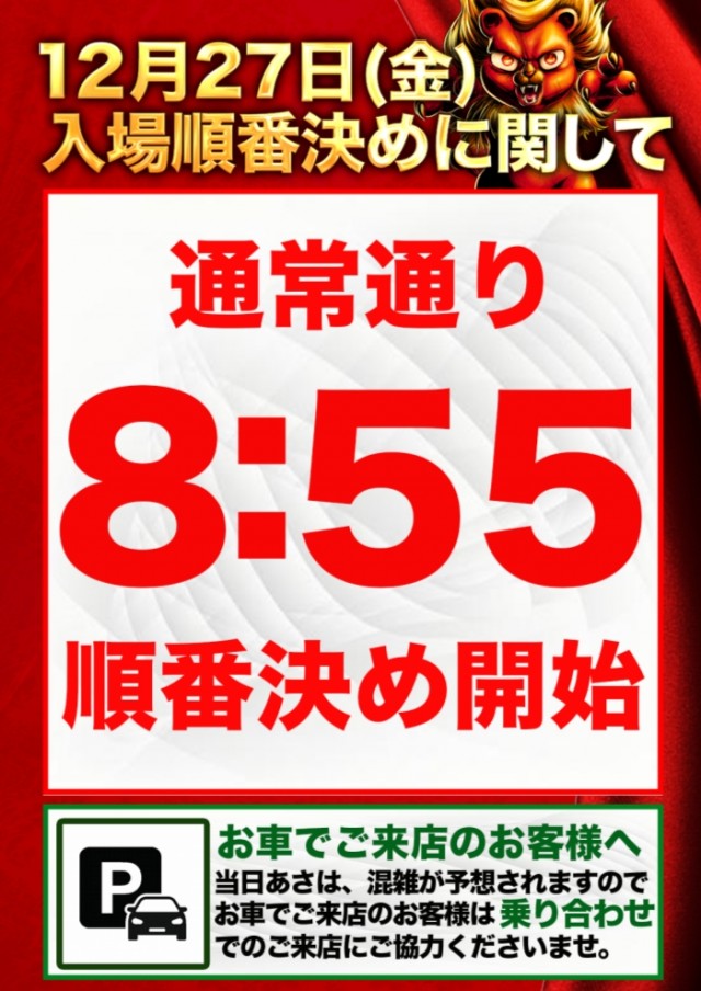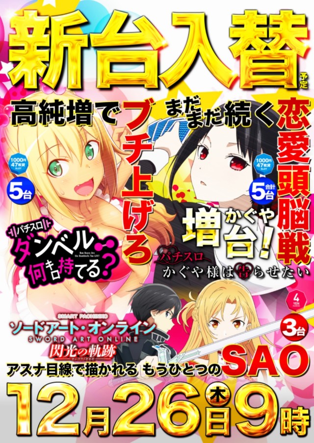 12月26日(木)新台入替初日!計3機種11台導入済!