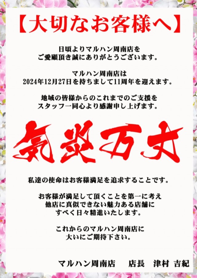 マルハン周南店は皆様の御来店を心よりお待ち致しております。