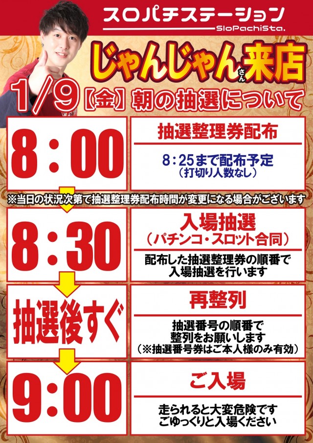 8:45抽選開始、8:50再整列、9:00開店入場 |
