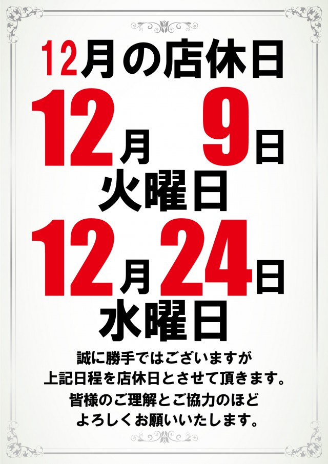 1位 12月10日(水) 2位 12月9日(火) 3位 12月11日(木)