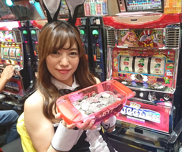 陽菜ちゃんが楽しんでいる「マイジャグラーⅡ」も人気があり、笑顔のお客様もたくさんみられました。