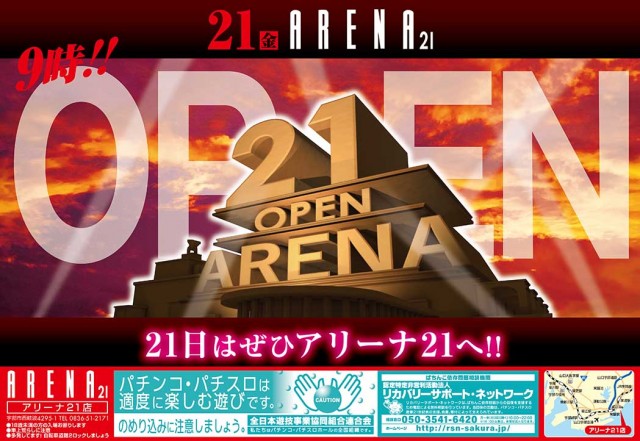 アリ-ナ21 本日21日(土曜日) 9時オ-プン!