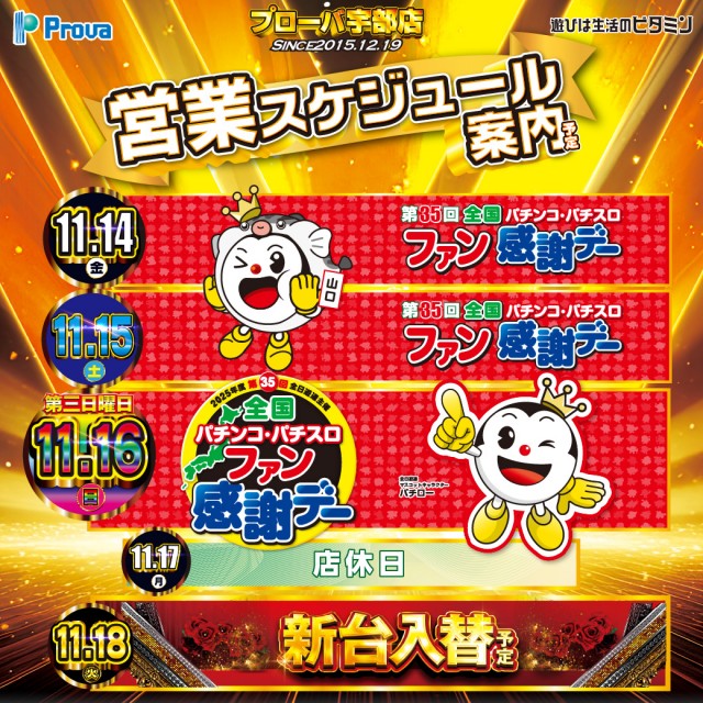 1位 11月3日(月) 2位 11月17日(月) 3位 11月16日(日)