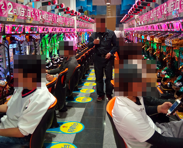 また、2円パチンコと4円パチンコのコーナーにも楽しげに遊技をしている姿があり、パチンコ全体がにぎやかな状態。