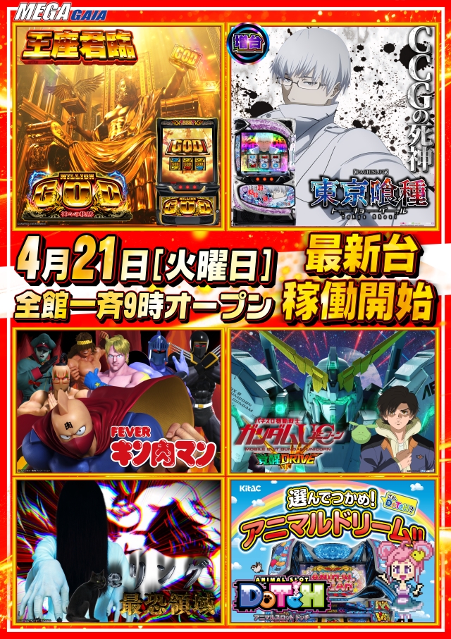 4月21日(火) Lミリオンゴッド他多数❗最新台稼働開始💗