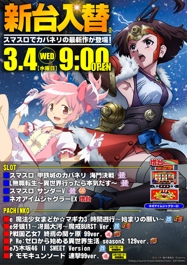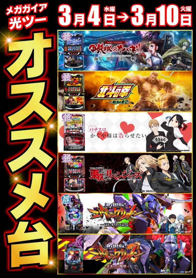 【3/3(火) 店休日】【3/4(水) 新台入替予定】