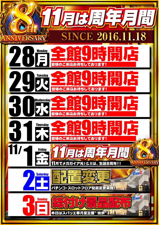 【11月は周年月間】全国パチンコパチスロファン感謝デー開催!