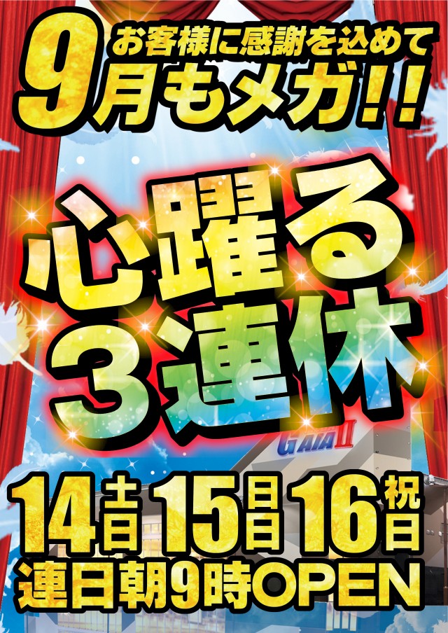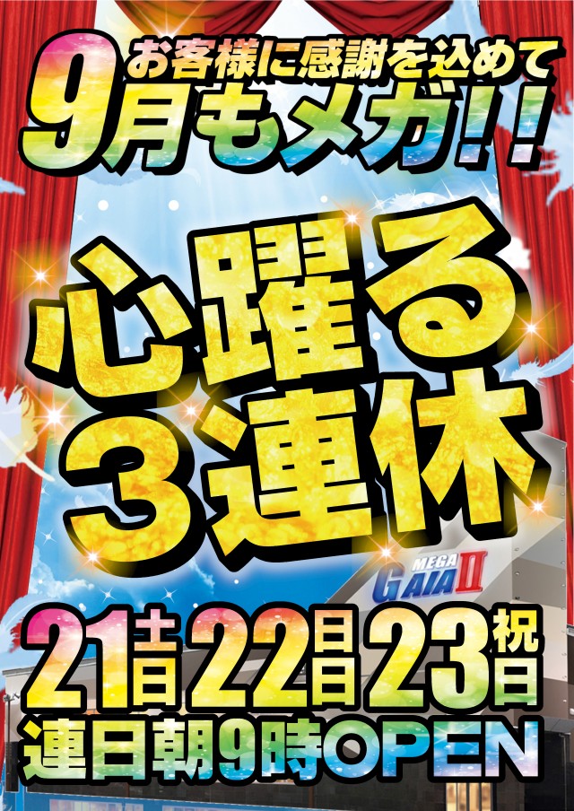 9月もメガ‼【3連休はメガガイアに行こう♪】