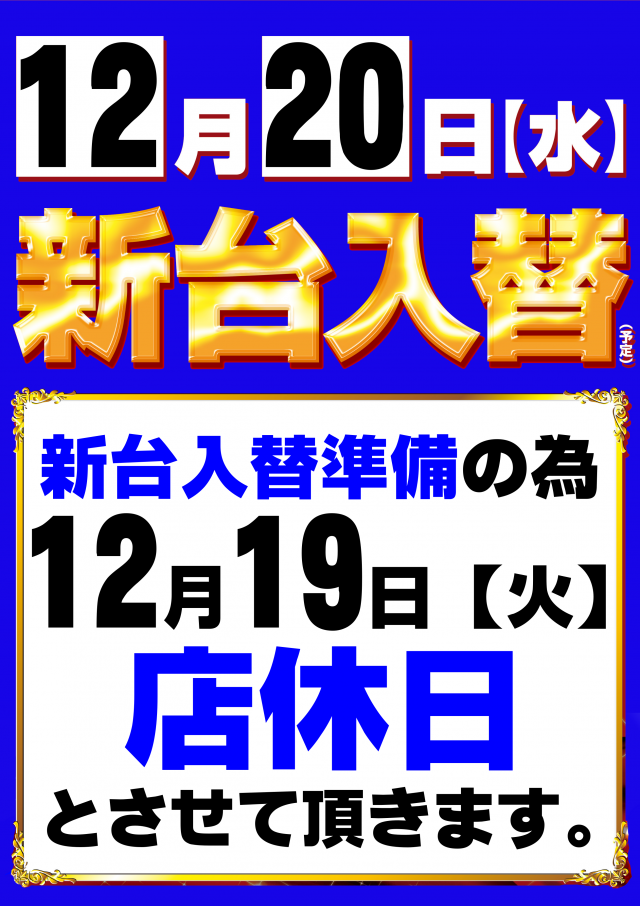 新台入替準備の為、