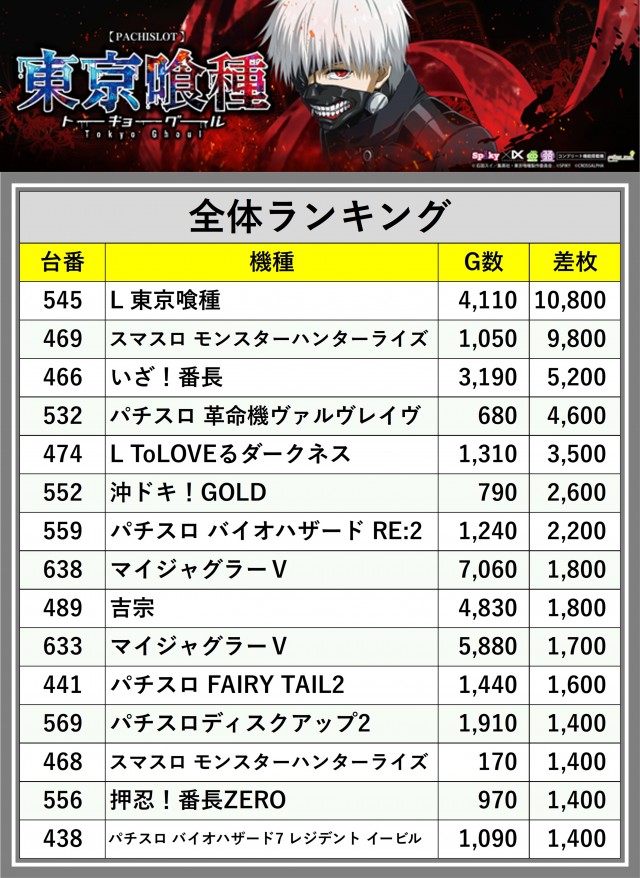 厳選された取材対象機種をはじめ、その他スロット全体から好記録が飛び出した!プレイヤーが楽しんだ1日を下記データにて振り返ってみて欲しい。