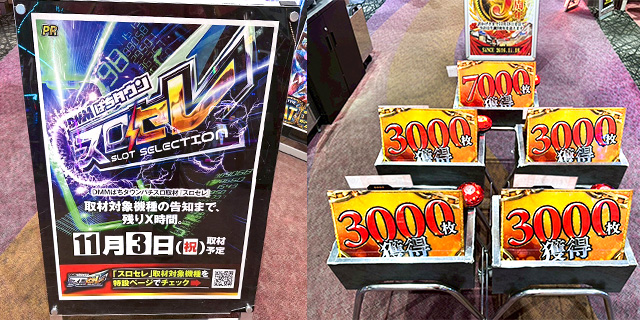 11月3日(月)メガガイア光ツインパークIIにて、DMMぱちタウンの新感覚取材「スロセレ」を実施。