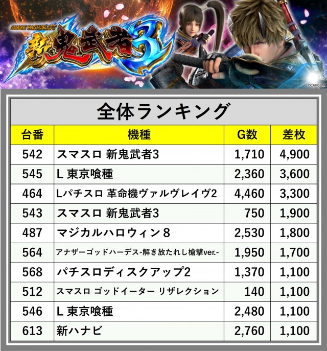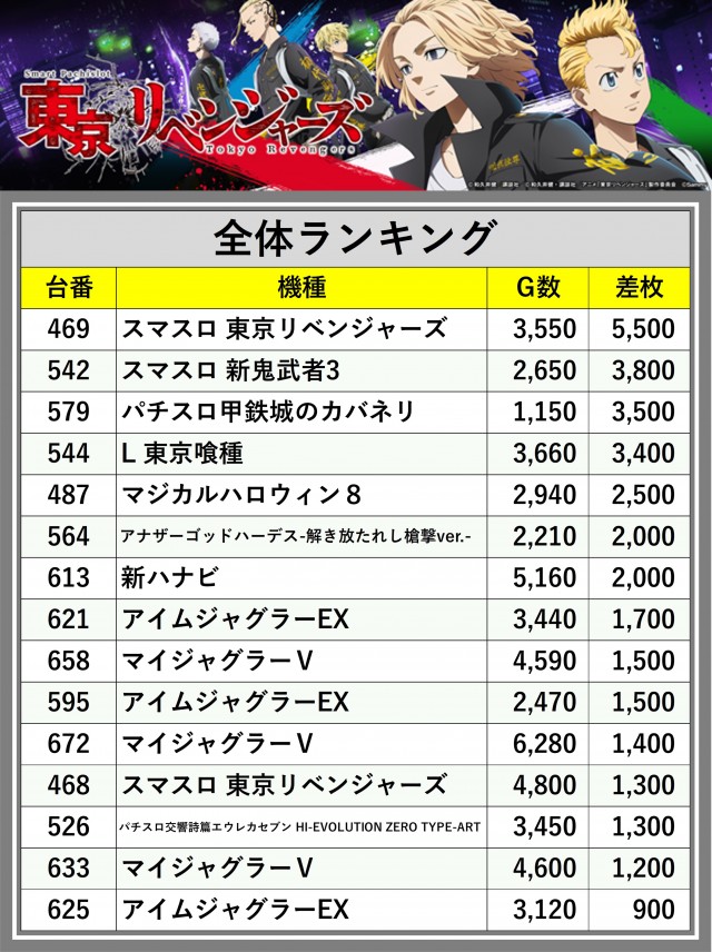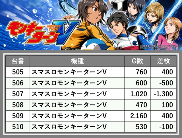 厳選された取材対象機種をはじめ、その他スロット全体から好記録が飛び出した!プレイヤーが楽しんだ1日を下記データにて振り返ってみて欲しい。
