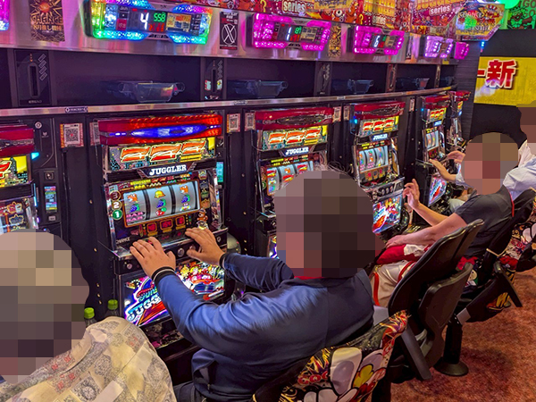 「マイジャグラーⅤ」や「ファンキージャグラー2」が微笑ましい状況。機種性能を最大限に発揮するプレイヤーが複数見られた。