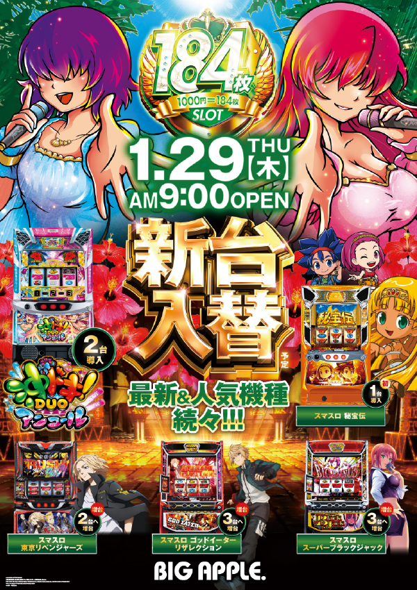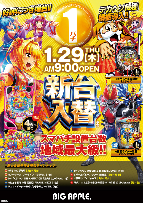 この後も少し遊んでいきませんか?ビッグアップル.周南店なら・・・加熱式電子タバコが遊技しながら吸えます話題の最新機種導入済み!!【本日1月31日】月末も林檎で楽しもう!!