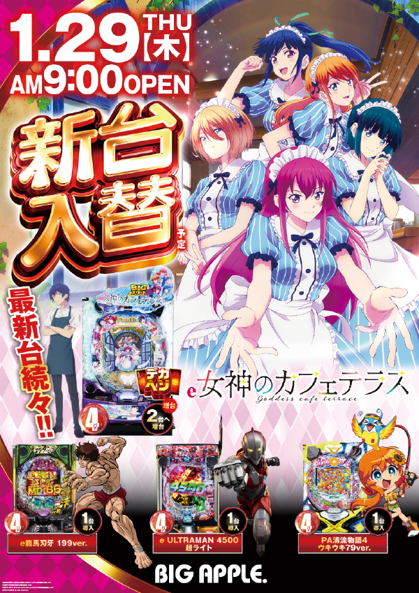 この後も少し遊んでいきませんか?ビッグアップル.周南店なら・・・加熱式電子タバコが遊技しながら吸えます話題の最新機種導入済み!!【本日1月30日】女神のカフェテラス増台済み!!