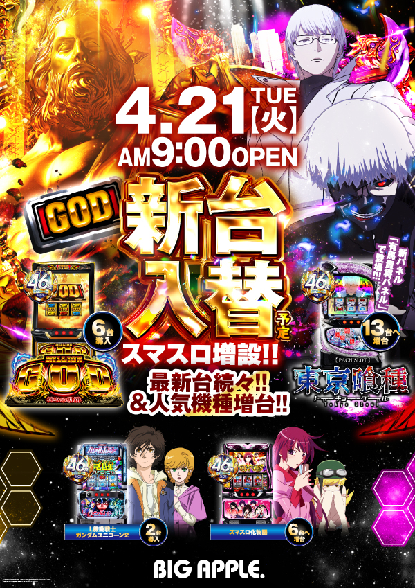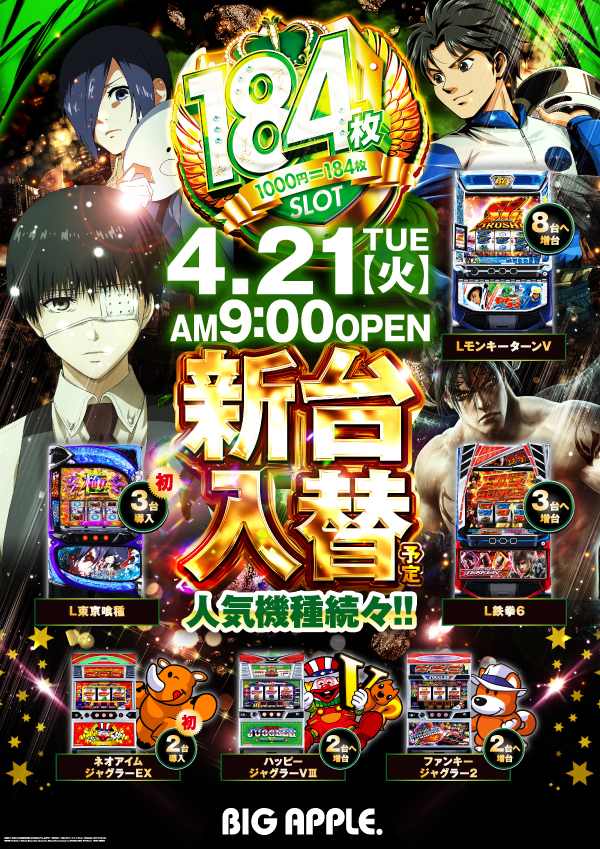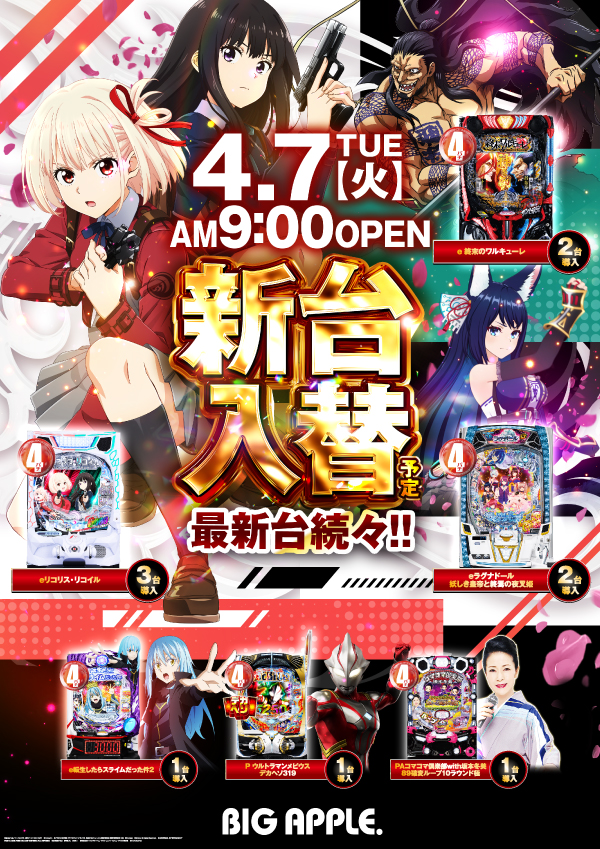 2️⃣1️⃣日🆕新台入替🆕 朝9時OPEN
