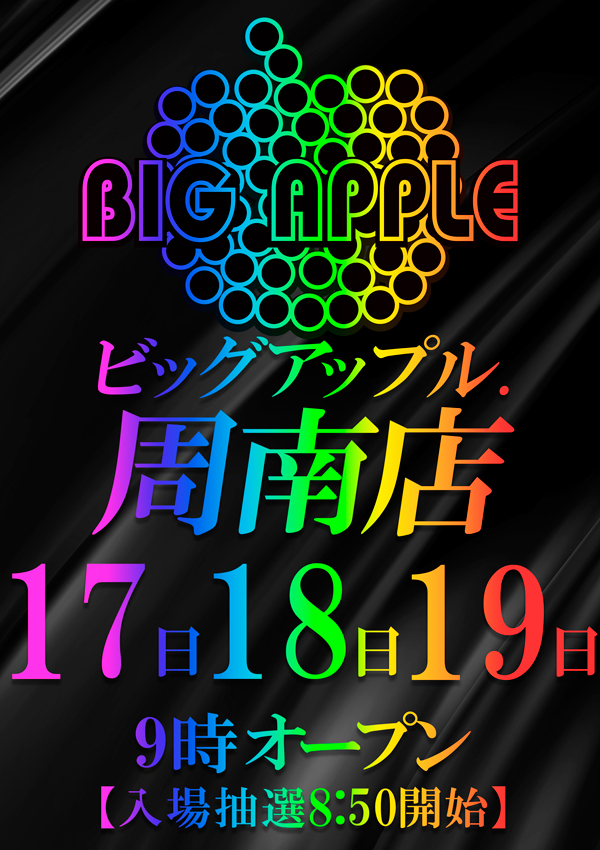 この後も少し遊んでいきませんか?ビッグアップル.周南店なら・・・加熱式電子タバコが遊技しながら吸えます話題の最新機種導入済み!!【本日19日】たろっぷさん来店&ジャグラーオススメ