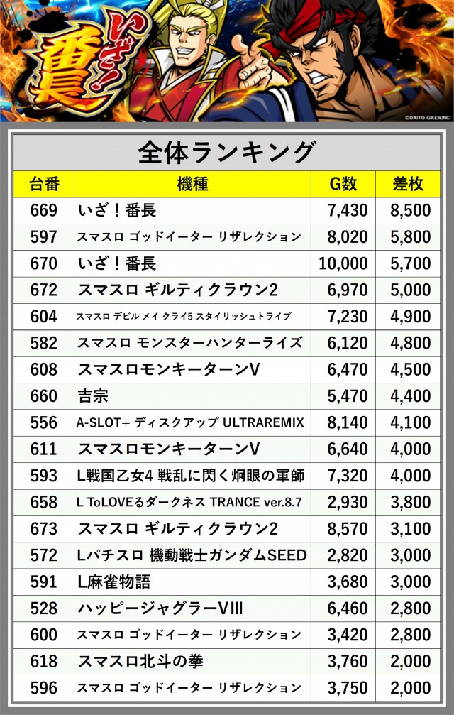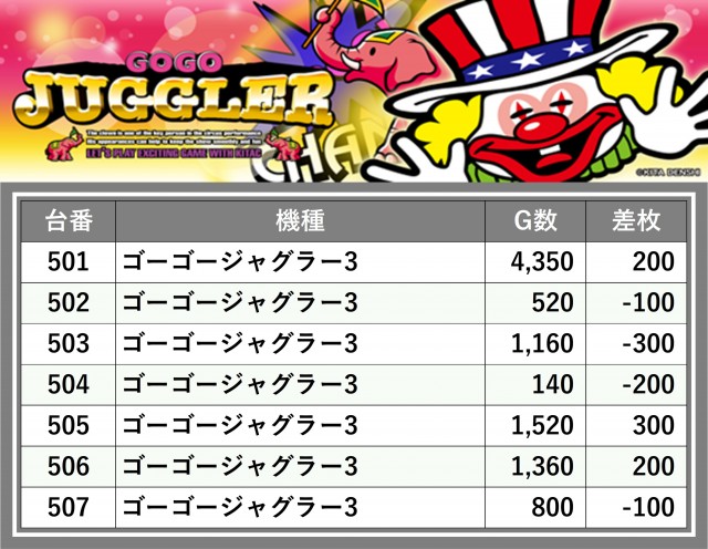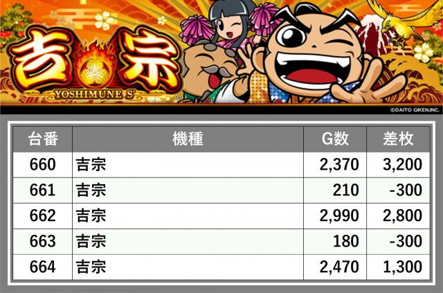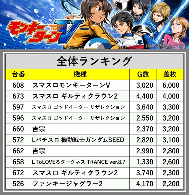 厳選された取材対象機種をはじめ、その他スロット全体から好記録が飛び出した!プレイヤーが楽しんだ1日を下記データにて振り返ってみて欲しい。