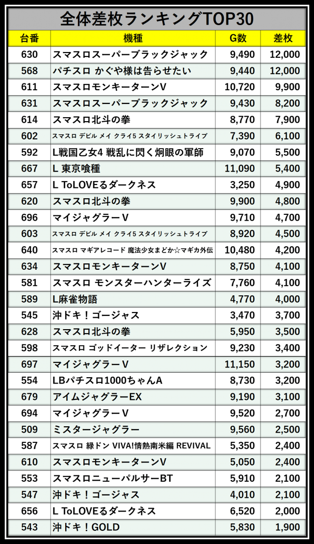 その結果の中から、ぱちタウンが注目すべきポイントを厳選してユーザーにお届け!プレイヤーが楽しんだ一日を下記データにて振り返ってみて欲しい。